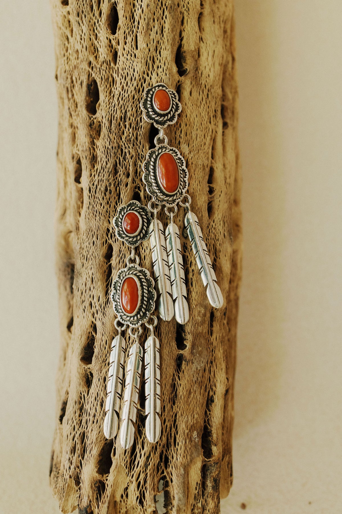 Coral Feather Earrings